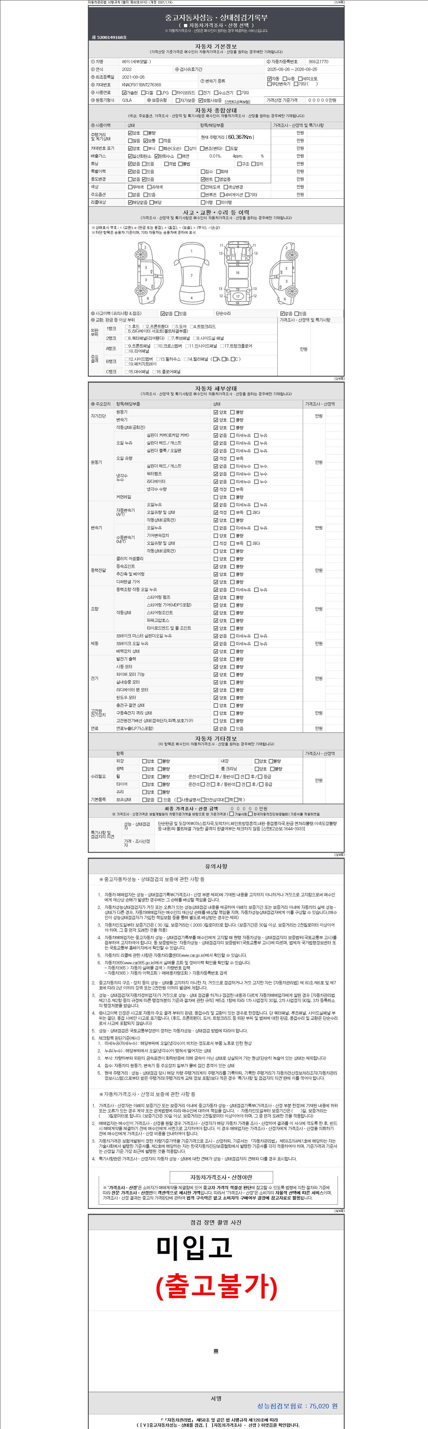 - 사고유무 : 성능기록부 참조