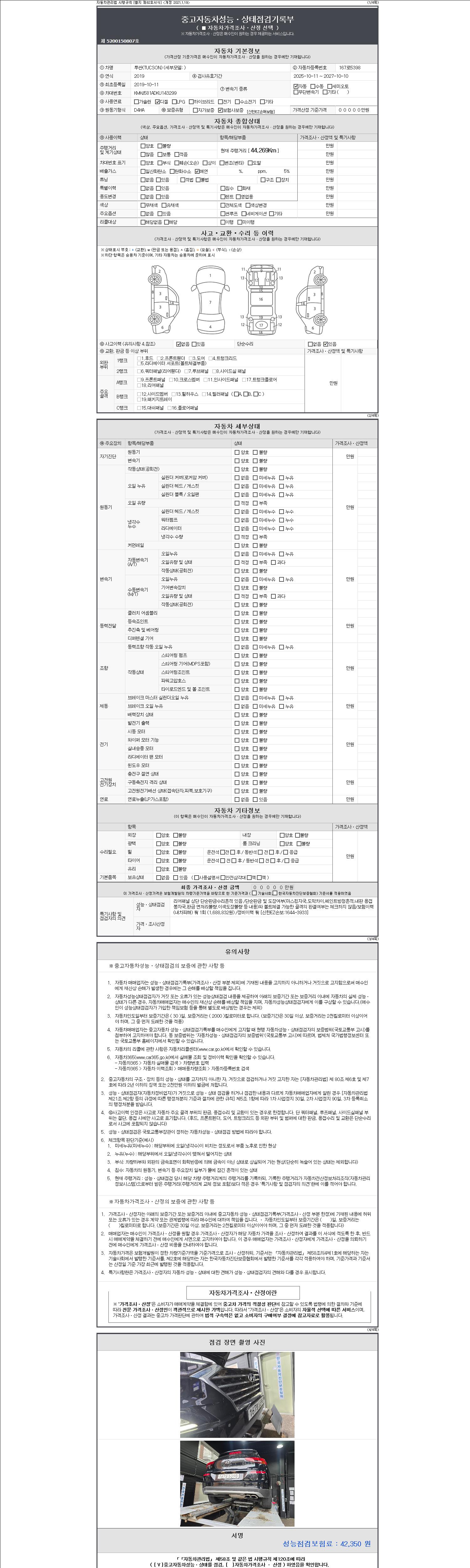 | 주행거리 | 44,269 km | 차량번호 | 167로5398 | 사고유무 | 성능기록부 참조 | 제시번호 | 제 2147483647 호 |