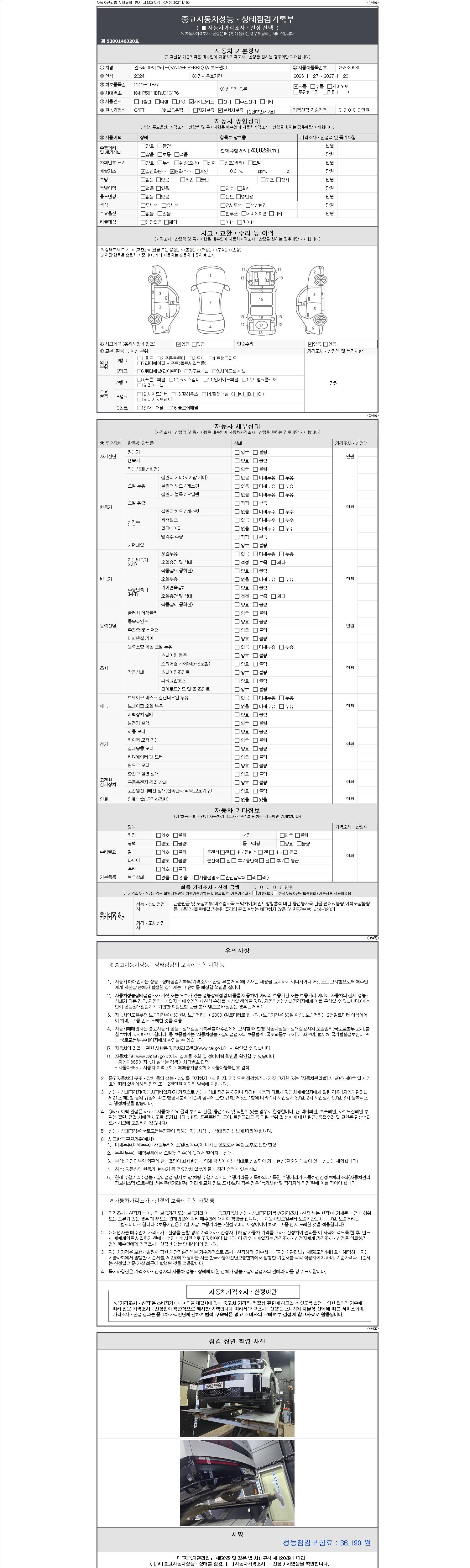 - 사고유무 : 성능기록부 참조
