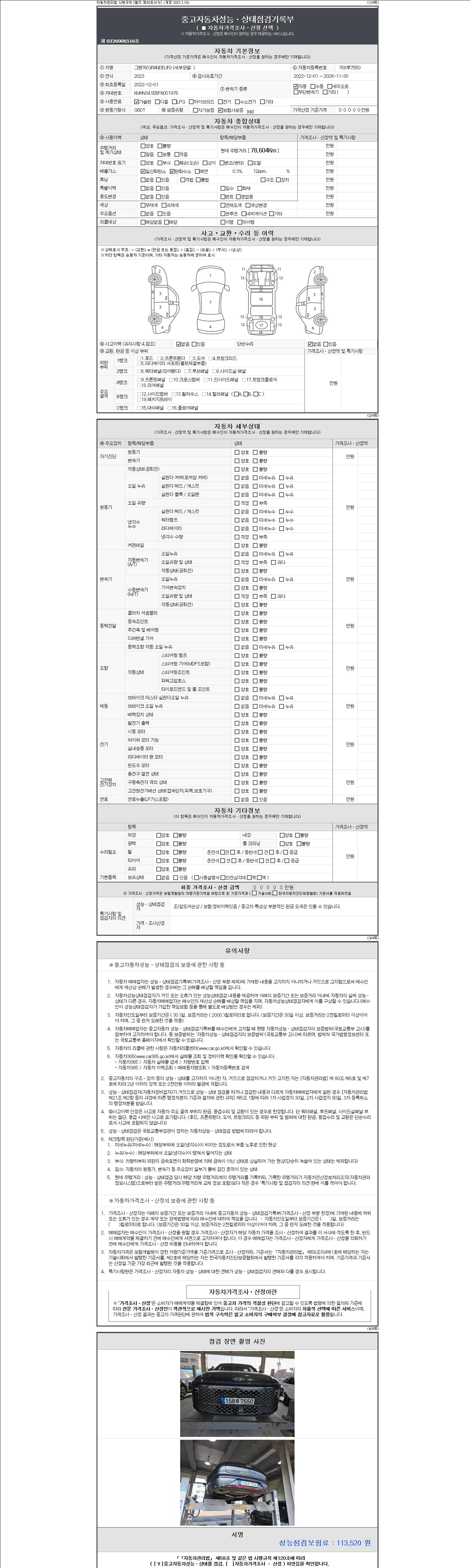 -중고자동차 매매업자를 통해 차량을 구입하실 경우 반드시 "중고자동차 성능, 상태점검 기록부"를 교뷰 받으셔야 하며, 매매업자는 반드시 의무 교부 하여야 압니다.