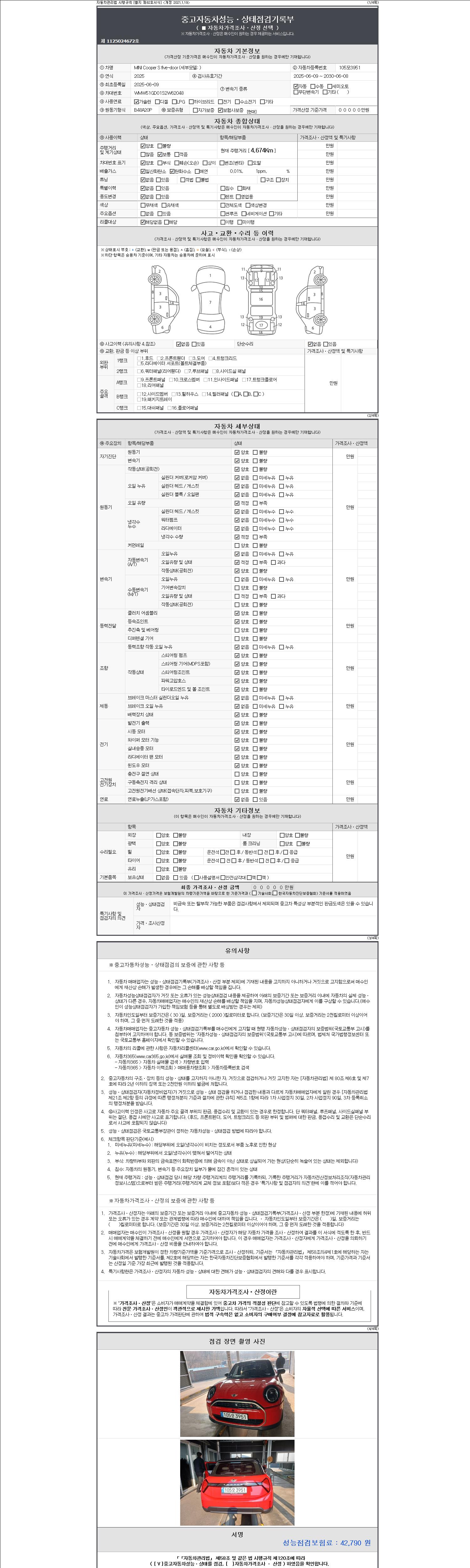 - 사고유무 : 성능기록부 참조