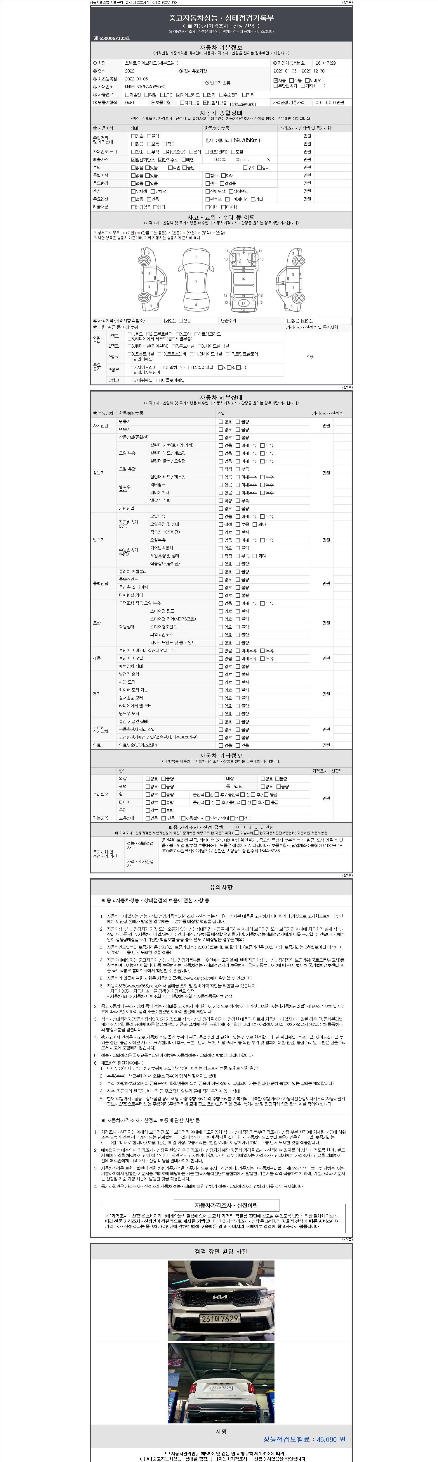 | 주행거리 | 69,705 km | 차량번호 | 261머7629 | 사고유무 | 성능기록부 참조 | 제시번호 | 제 2147483647 호 |